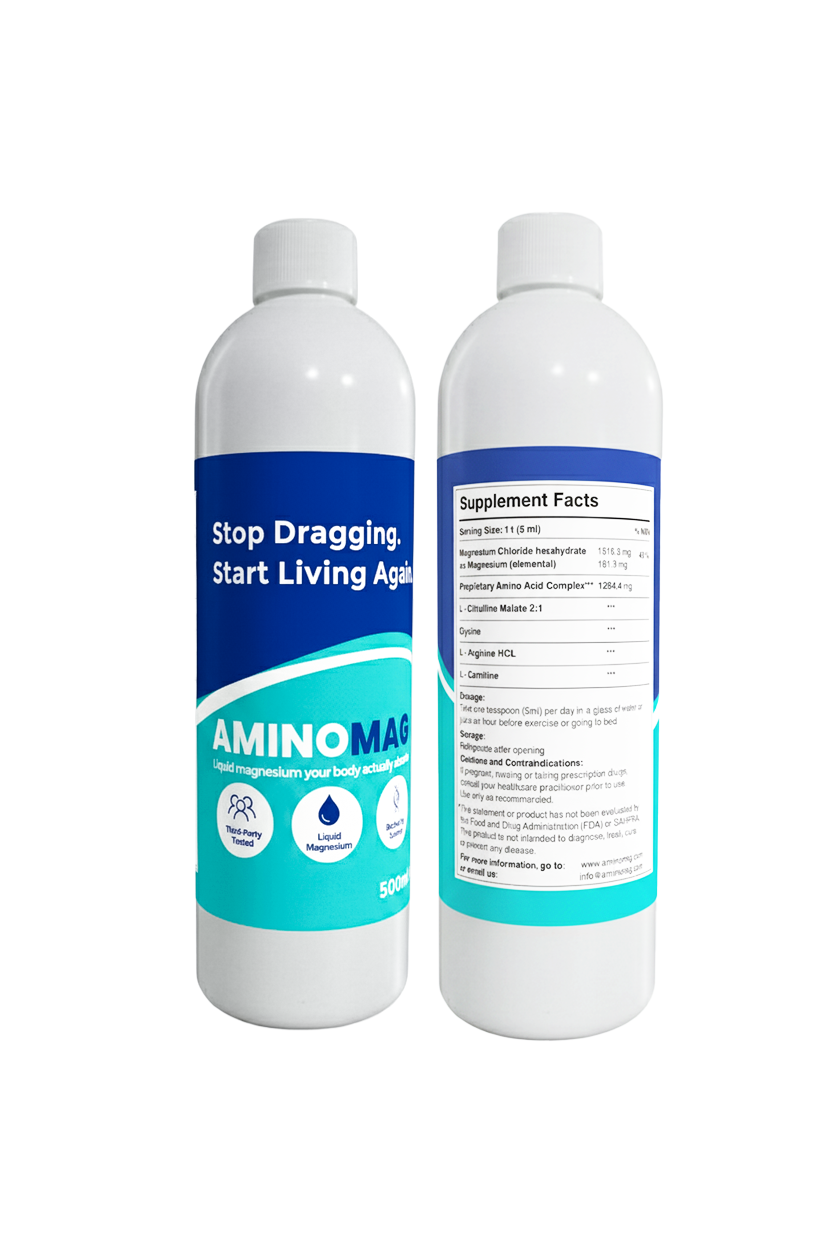 Unlock sustained energy and sharp mental clarity with AminoMag 500ml, the highly bioavailable liquid magnesium glycinate complex.